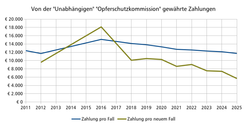Diagramm der Zahlungen an die Opfer im Zeitverlauf